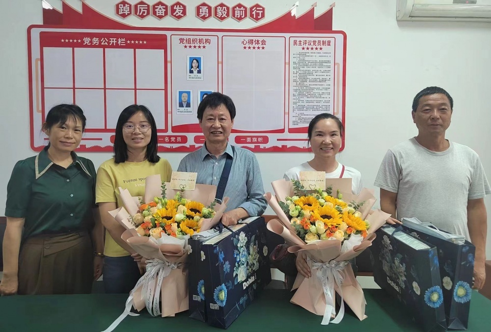 營業(yè)中心班子各自回顧起與兩位退休職工一起工作的美好時光,大家暢所欲言,暖心的話語,觸動著彼此,期盼退休后繼續(xù)關(guān)心、幫助、支持公交事業(yè)的發(fā)展,?!盎丶摇笨纯础kS后為姚開忠、胡玲玲獻上鮮花并合影留念。