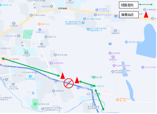 立交橋東側(cè)(楊灣公園—化工循環(huán)產(chǎn)業(yè)園)接駁點(diǎn):楊灣公園垃圾轉(zhuǎn)運(yùn)站旁,乘客可在接駁點(diǎn)免費(fèi)換乘。